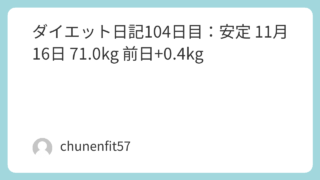 ダイエット日記104日目:安定 11月16日 71.0kg 前日+0.4kg