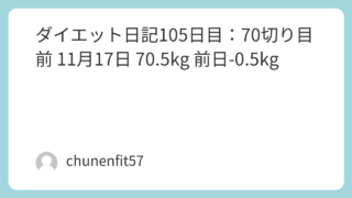 ダイエット日記105日目:70切り目前 11月17日 70.5kg 前日-0.5kg