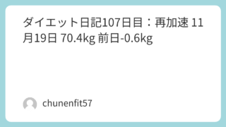 ダイエット日記107日目:再加速 11月19日 70.4kg 前日-0.6kg