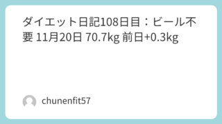 ダイエット日記108日目:ビール不要 11月20日 70.7kg 前日+0.3kg