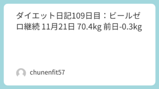 ダイエット日記109日目:ビールゼロ継続 11月21日 70.4kg 前日-0.3kg