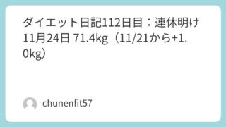 ダイエット日記112日目:連休明け 11月24日 71.4kg(11/21から+1.0kg)