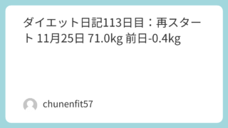 ダイエット日記113日目:再スタート 11月25日 71.0kg 前日-0.4kg