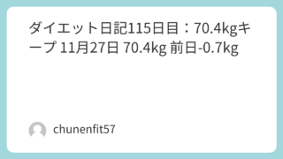 ダイエット日記115日目:70.4kgキープ 11月27日 70.4kg 前日-0.7kg