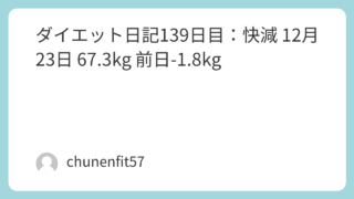 毎日の変化 ダイエット日記139日目:快減 12月23日 67.3kg 前日-1.8kg