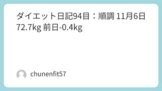 ダイエット日記94目:順調 11月6日 72.7kg 前日-0.4kg