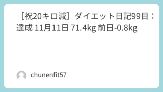 [祝20キロ減]ダイエット日記99目:達成 11月11日 71.4kg 前日-0.8kg