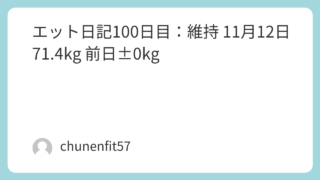 エット日記100日目:維持 11月12日 71.4kg 前日±0kg