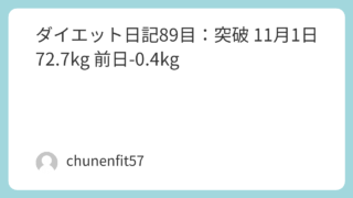 ダイエット日記89目:突破 11月1日 72.7kg 前日-0.4kg