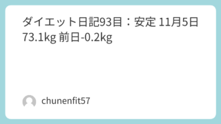 ダイエット日記93目:安定 11月5日 73.1kg 前日-0.2kg
