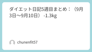 1週間まとめ ダイエット日記6週目まとめ:(9月9日~9月15日) -1.9kg 2025年9月9日~9月15日、57歳中年フィットおじさんのマンジャロダイエット6週目のまとめ。体重80.6kgで前週比-1.9kg、5mgから2.5mg切り替え。63kgを目指す。 2025.09.15 1週間まとめ