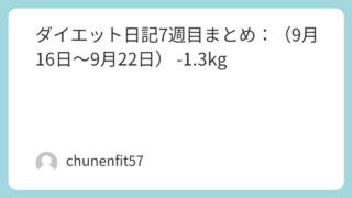 1週間まとめ ダイエット日記7週目まとめ:(9月16日~9月22日) -1.3kg 2025年9月16日~9月22日、57歳中年フィットおじさんのマンジャロダイエット7週目のまとめ。体重79.0kgで前週比-1.3kg、2.5mgで安定と運動強化。63kgを目指す。 2025.09.22 1週間まとめ