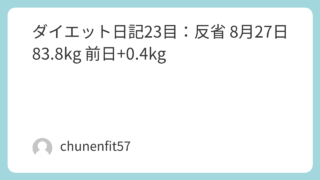 毎日の変化 ダイエット日記23目:反省 8月27日 83.8kg 前日+0.4kg 2025年8月27日、57歳中年フィットおじさんがマンジャロで23日目。体重83.8kgで前日+0.4kg、飲酒習慣の反省と自転車10km。63kgを目指す。 2025.08.27 毎日の変化