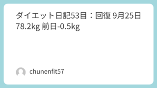毎日の変化 ダイエット日記53目:回復 9月25日 78.2kg 前日-0.5kg 2025年9月25日、57歳中年フィットおじさんがマンジャロで53日目。体重78.2kgで前日-0.5kg、2.5mgで便秘回復と4km散歩。63kgを目指す。 2025.09.25 毎日の変化