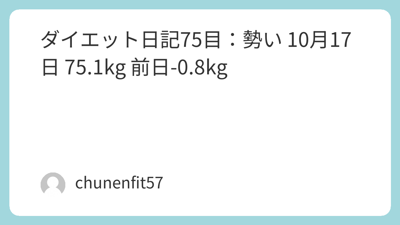 ダイエット日記75目:勢い 10月17日 75.1kg 前日-0.8kg