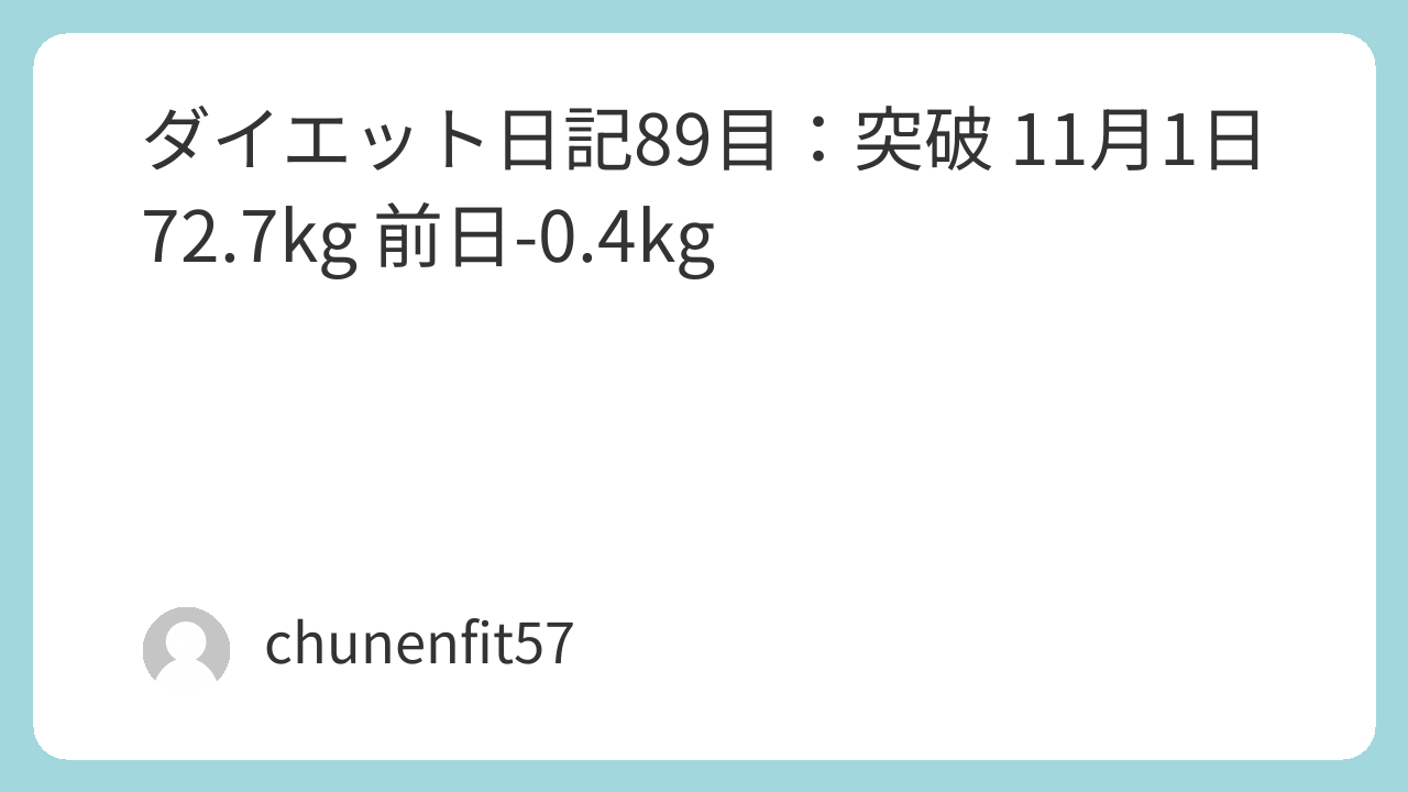 こんにちは、中年フィットおじさんです。57歳、独身、身長169cmで、8月5日からマンジャロを活用してダイエットに挑戦しています。89日目となる10月31日で、体重は72.7kgとなり、前日から-0.4kgとなりました。記事は当日にまとめています。祝73kg切り!食事量が減り、突破した一日でした。目標は91.4kgから63kgへの減量ですが、良い流れが続いています。
