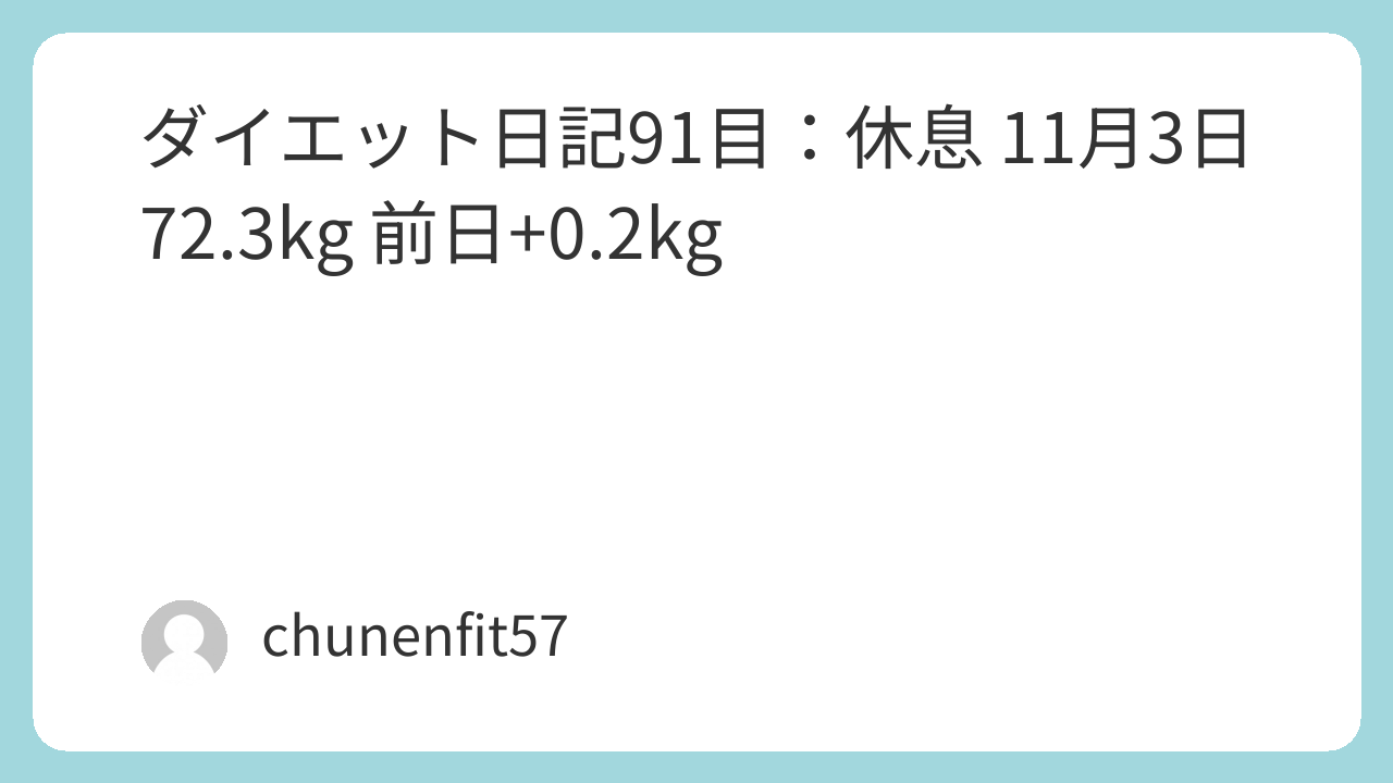 2025年11月3日 本日の体重: 72.3kg (+0.2kg)