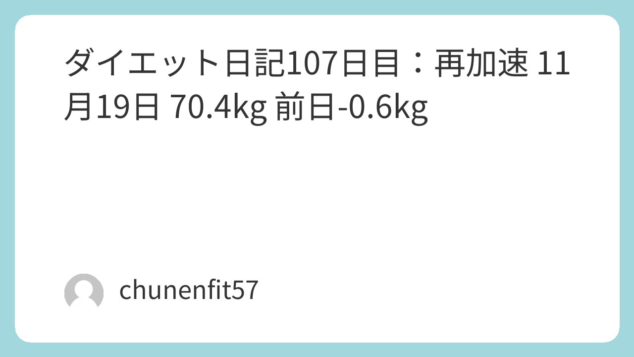 こんにちは、中年フィットおじさんです。57歳、独身、身長169cmで、8月5日からマンジャロを活用してダイエットに挑戦しています。107日目となる11月19日で、体重は70.4kgとなり、前日から-0.6kgとなりました。記事は当日、つまり2025年11月19日にまとめています。注射翌日で再加速した一日でした。目標は91.4kgから63kgへの減量ですが、また70kg切りが見えてきました!