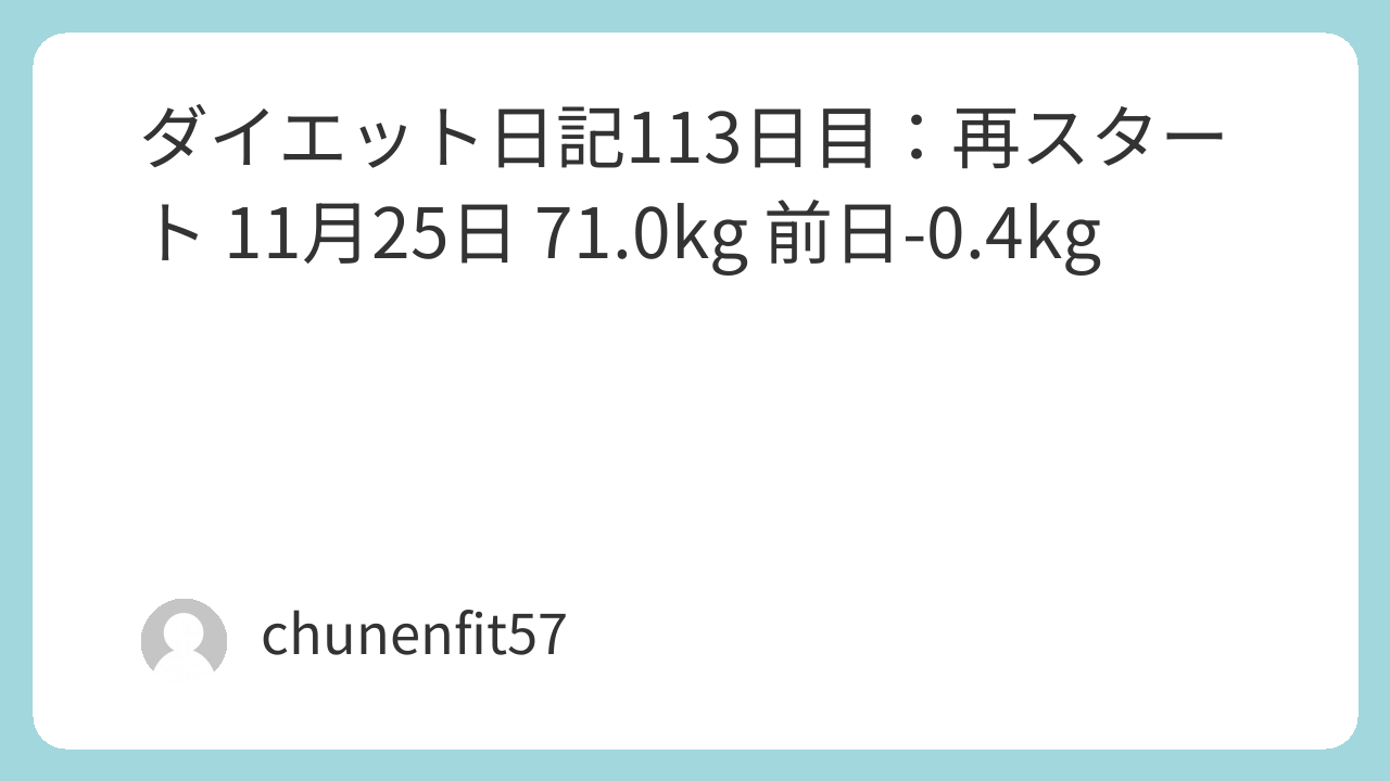 開始時から-20.4kg(91.4kg→71.0kg)。連休の+1kgをすぐに取り戻し、70kg切りまであと少し。この注射週をフル活用して一気に70kg切り達成したい!明日からもこのペースで。このダイエット旅は健康的な生活習慣の確立が目標であり、113日目の再スタートを次に活かしたいです。記事は随時更新し、みなさんとの共有を通じて励みにします。応援やアドバイスがあればぜひお聞かせください!