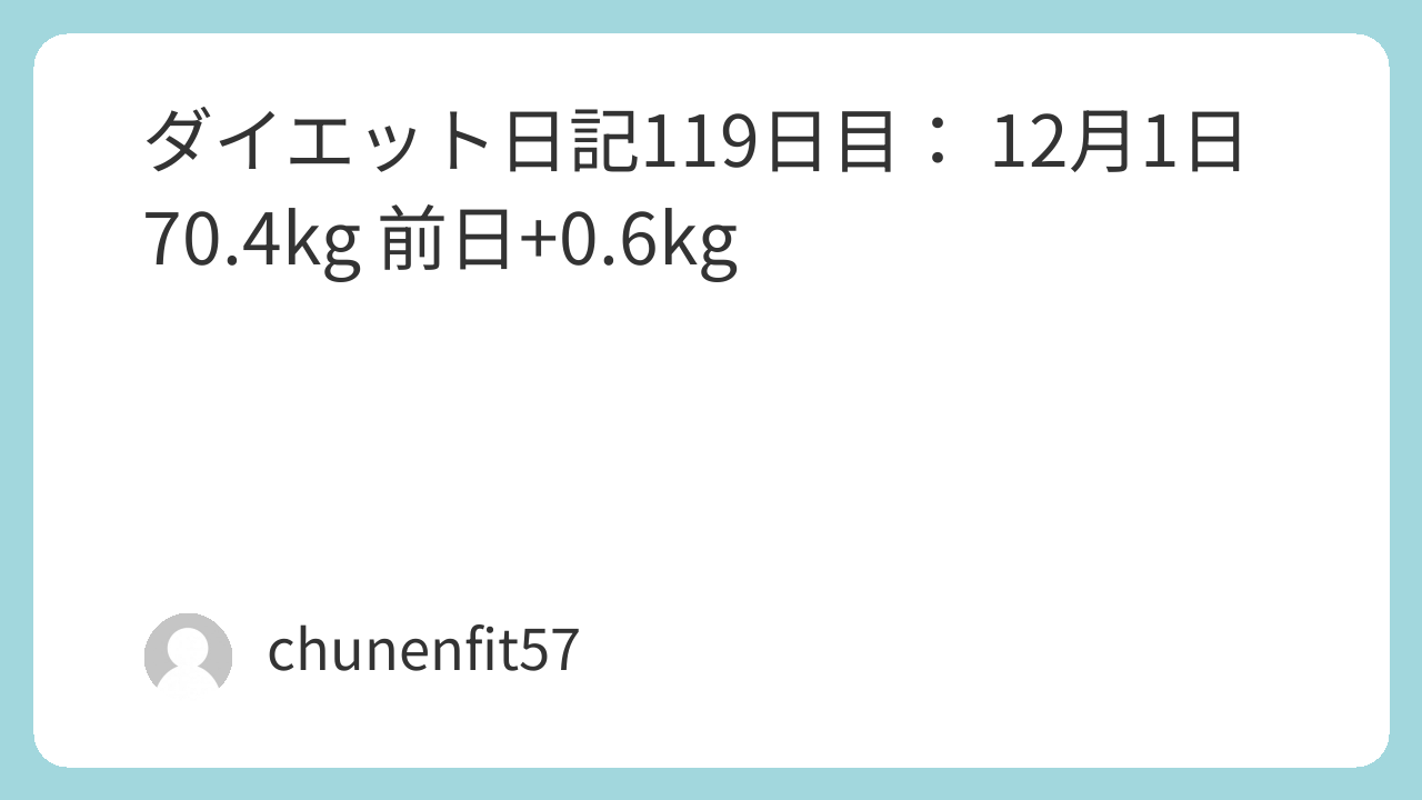 ダイエット日記119日目: 12月1日 70.4kg 前日+0.6kg