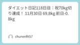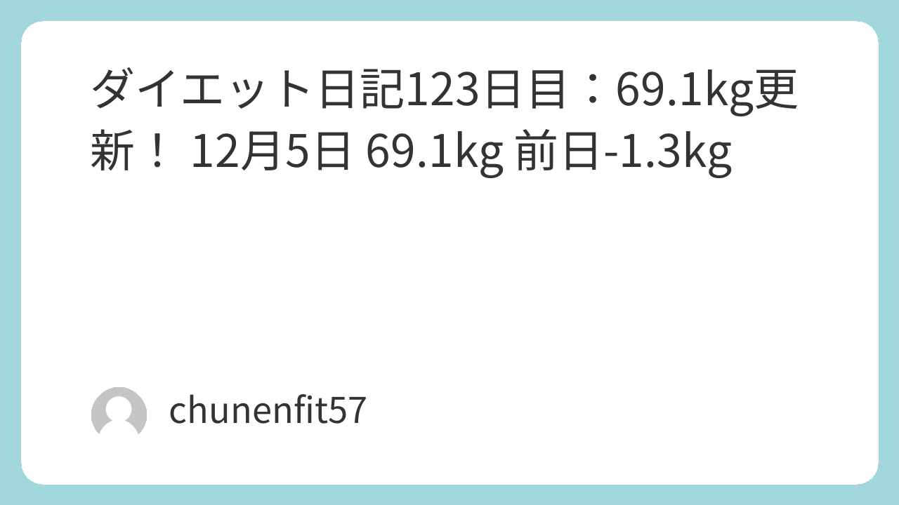 開始時から-22.3kg(91.4kg→69.1kg)。69kg台更新は大きな励み!63kgまであと6.1kg。この流れを止めず、年末もリバウンドゼロで突き進みます。このダイエット旅は健康的な生活習慣の確立が目標であり、123日目の69kg台更新を次に活かしたいです。記事は随時更新し、みなさんとの共有を通じて励みにします。応援やアドバイスがあればぜひお聞かせください!