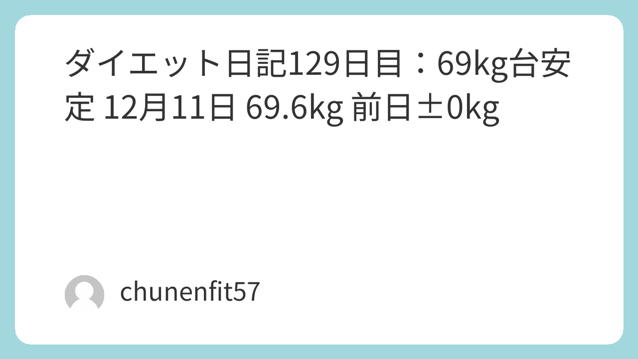 開始時から-22.0kg(91.4kg→69.6kg)。69kg台が完全に定着し、体も軽く感じます。年末に向けてこの流れを死守し、70kg切りを盤石に→65kgへ。このダイエット旅は健康的な生活習慣の確立が目標であり、129日目の69kg台安定を次に活かしたいです。記事は随時更新し、みなさんとの共有を通じて励みにします。応援やアドバイスがあればぜひお聞かせください!