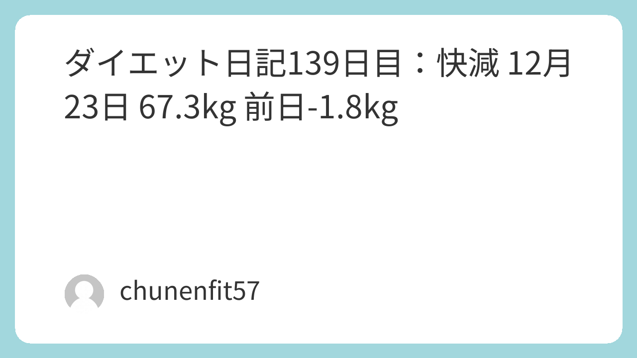 こんにちは、中年フィットおじさんです。57歳、独身、身長169cmで、8月5日からマンジャロを活用してダイエットに挑戦しています。139日目となる12月23日で、体重は67.3kgとなり、前日から-1.8kgとなりました。記事は当日、12月23日にまとめています。最近できなかった運動を多めにした結果、嬉しい数字が出た快減の一日でした。目標は91.4kgから63kgへの減量ですが、良い流れが続いています。