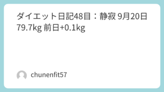 毎日の変化 ダイエット日記48目:静寂 9月20日 79.7kg 前日+0.1kg 2025年9月20日、57歳中年フィットおじさんがマンジャロで48日目。体重79.7kgで前日+0.1kg、2.5mgで静かな一日。63kgを目指す。 2025.09.20 毎日の変化